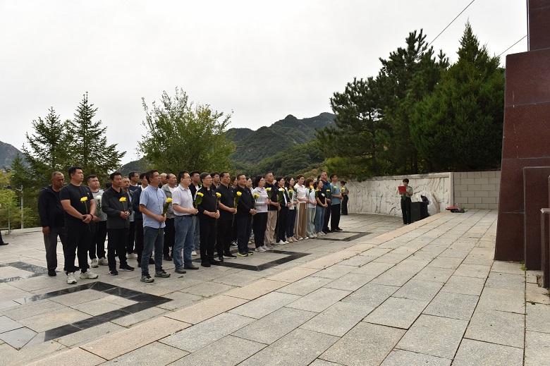 “一寸山河一寸血,一抔热土一缕魂”。花厂峪曾是八路军挺进东北的前沿阵地和冀热辽边区抗日斗争的核心区域,在这里发生过大小战斗200余次,铭刻着无数英烈浴血奋战的壮烈史诗。在庄严肃穆的花厂峪烈士陵园,全体人员整齐列队,向抗日英雄纪念碑敬献鲜花、肃立默哀,表达对革命先辈的无限哀思与崇高敬意。面对鲜红党旗,全体党员重温入党誓词,以铿锵誓言宣告不忘初心、牢记使命的坚定信念。